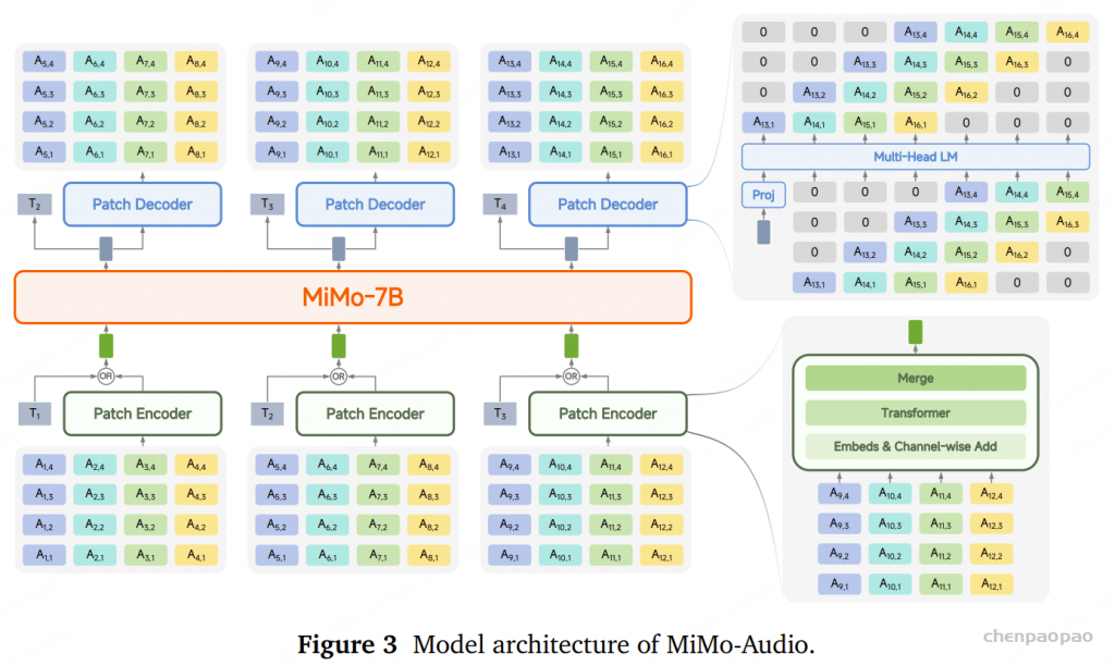 MiMo-Audio 主要由三个核心组件构成:
