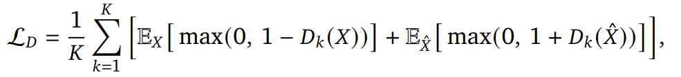 真实波形 𝑋与生成波形 𝑋̂,判别器的目标可被形式化为: