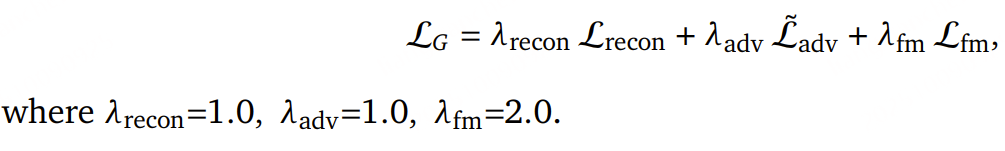 采用多任务 GAN 训练方案,联合优化以下目标:梅尔谱图重建损失、对抗损失、判别器特征匹配损失,为了在时域(time domain)和频域(frequency domain)同时提供监督,使用了Multi-Period Discriminator 和 Multi-Scale STFT Discriminator,训练框架采用 Hinge-GAN。