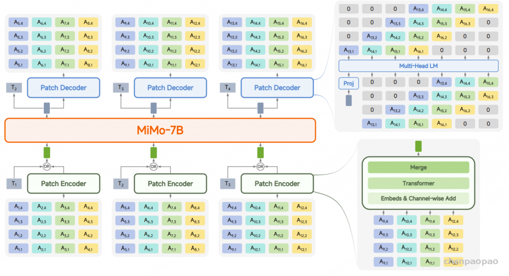 采用 MiMo-7B-Base 作为 LLM 主干网络。该模型在每个位置上都可以接收两种类型的输入: