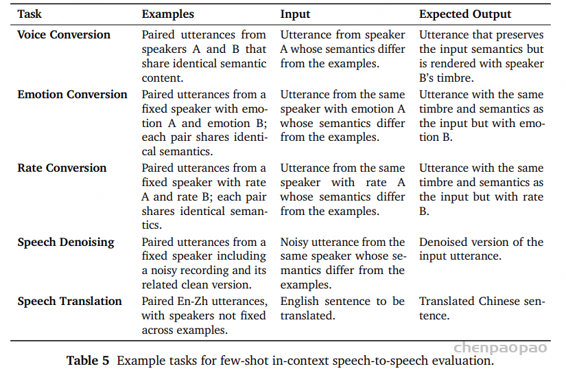 在语音输入与输出条件下,它取得了接近文本版 MMLU 的卓越成绩,文本任务的性能仅出现极小幅度下降。更重要的是,它在未见过的任务上也具有优异的泛化能力:只需在上下文中提供少量示例,它就能完成包括语音转换、风格迁移、语速控制、去噪以及语音翻译等任务。