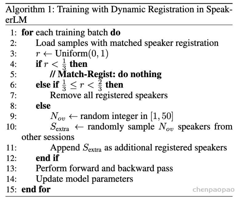 - 如果随机数大于 2/3,则从其他会话中随机采样 1 到 50 名说话人,并将其作为冗余的已注册说话人附加到提示中(Over-Regist)。