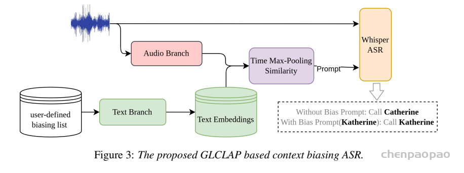 其中,提供的偏置词列表刻意包含与当前语音无关的词项或干扰词,以避免模型过度依赖偏置词并提升其判别能力。