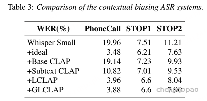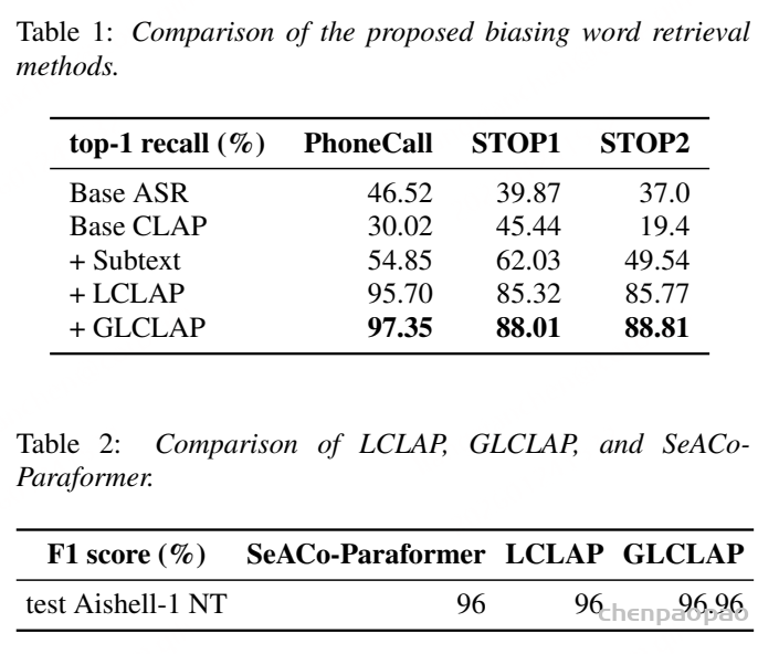 - 提出全局-局部对比式语言-音频预训练模型(GLCLAP),能够在不同尺度上提取音频信息,显著提升句内偏置提示的准确性;