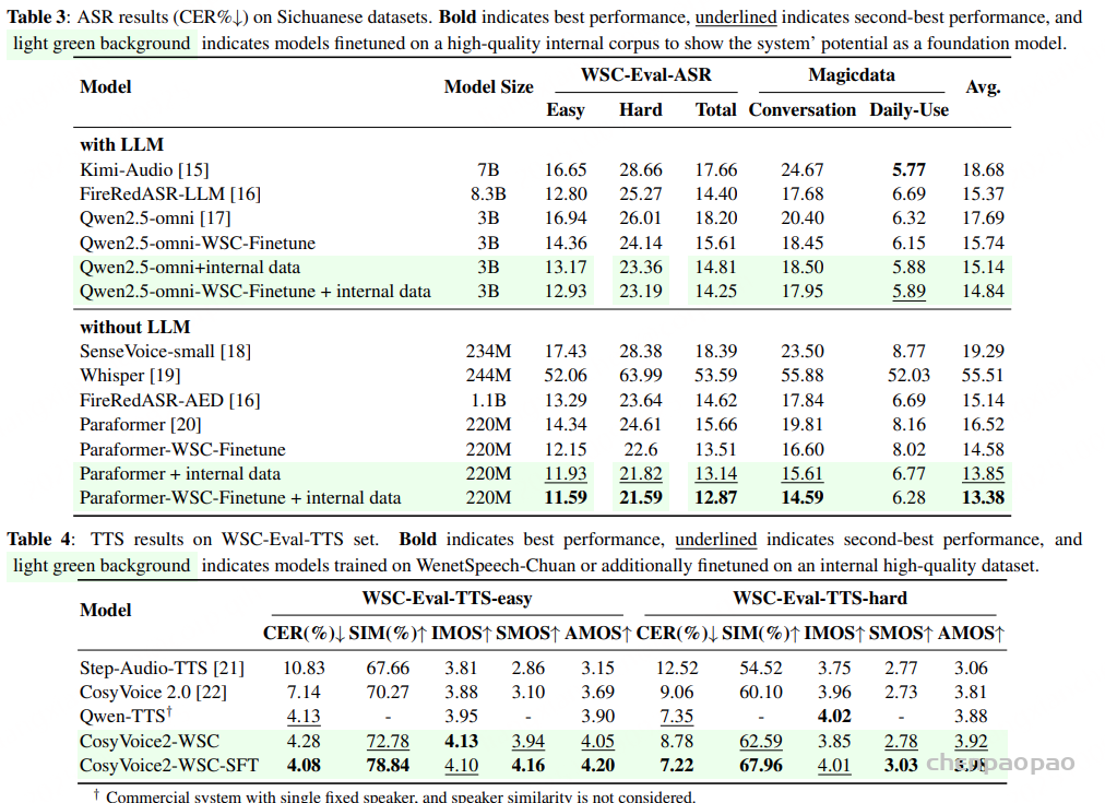 阶段 4 :对音频编码器和适配器进行全参数微调,同时对 LLM 采用 LoRA 进行微调 。在此阶段,仅使用 高质量数据 (约 300 万小时语音 )。这些转录数据由 Whisper-Large-V3、FireRed-ASR 和 SenseVoice 三个不同的 ASR 模型进行评估 。
